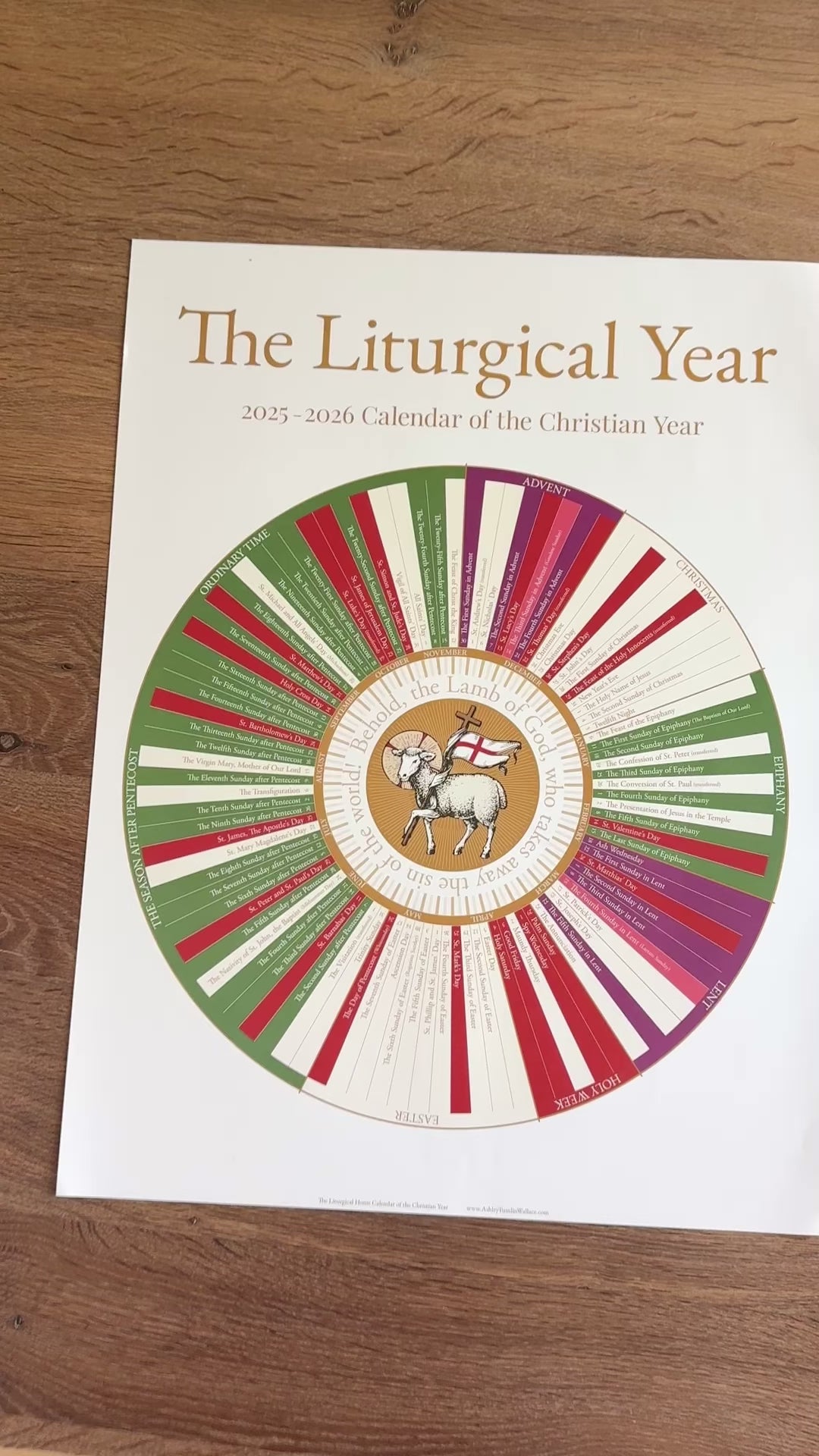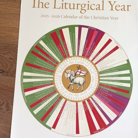 Bring the beauty and rhythm of the Church year into your home with this stunning 2025-2026 Circular Liturgical Calendar. Designed to visually guide your family through the seasons of the Christian year, this calendar showcases the key feast days, liturgical colors, and holy seasons in a simple, elegant layout.