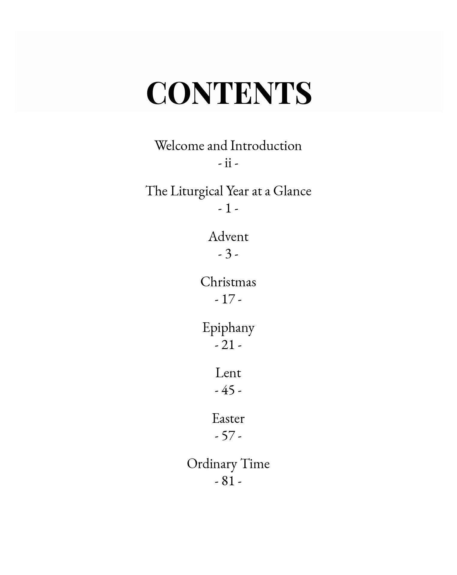 - Thoughtfully designed layouts to help you plan your days while staying anchored in the rhythm of the liturgical year.