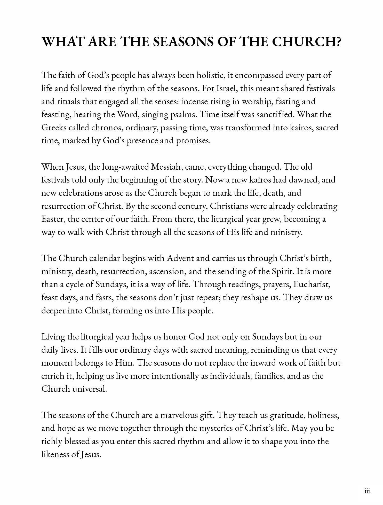 - Seasonal Reflections and Traditions – Guidance for observing Advent, Christmas, Lent, Easter, and Ordinary Time with purpose.